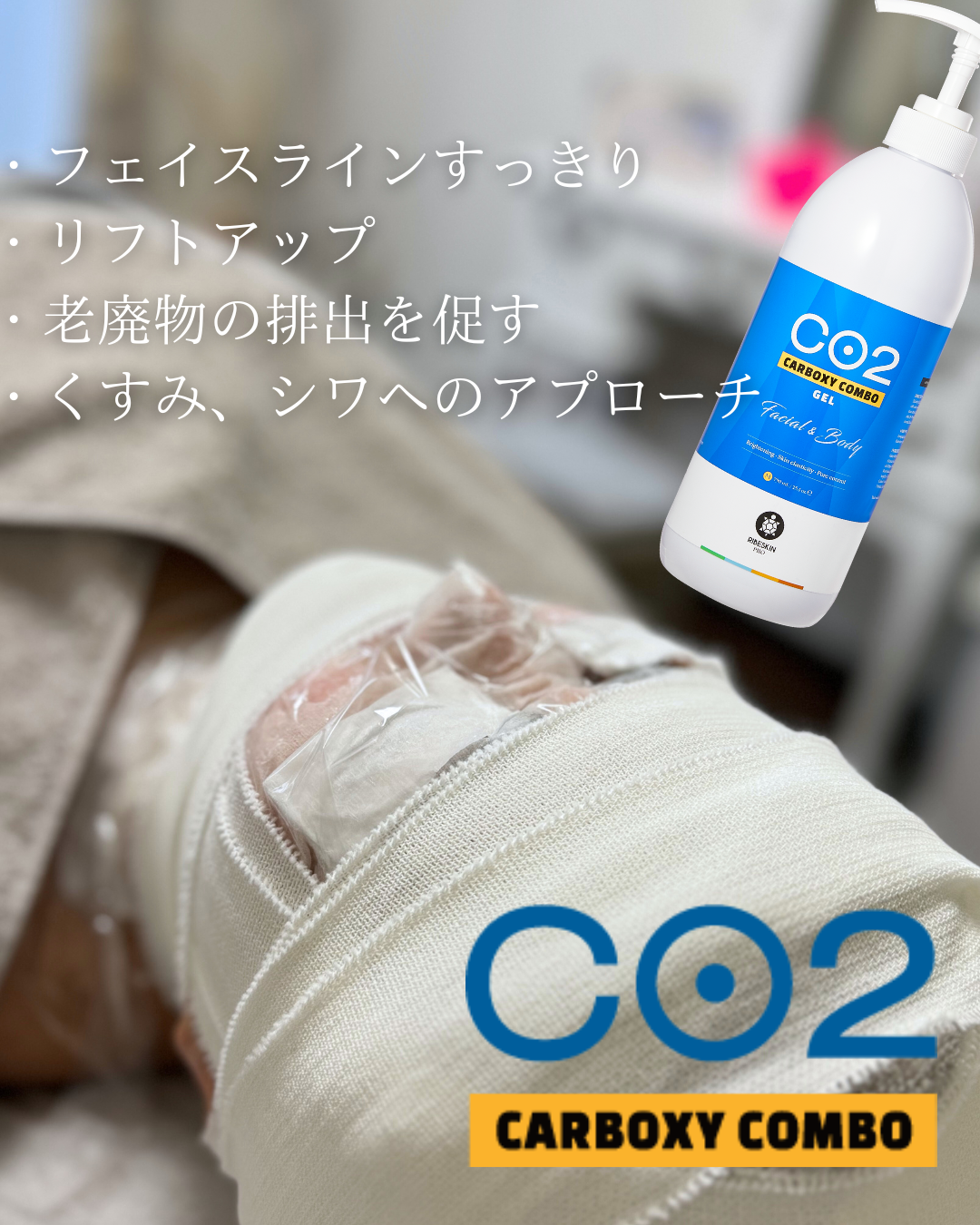 カーボキシーでお肌の上で炭酸ガスを発生させたら更にその上にバンテージを巻く技術があります。